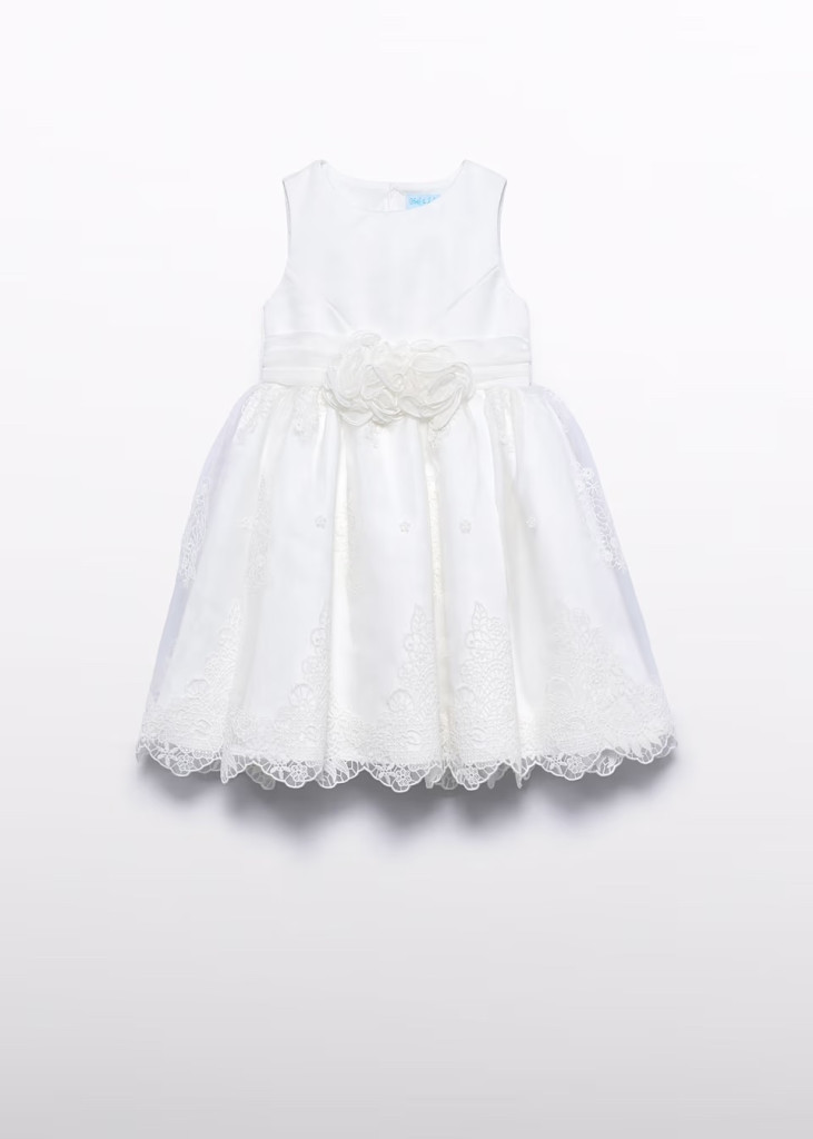 Abel&Lula A vonalú gyönyörű hófehér tüllruha többrétegű alsószoknyával hátul láthatatlan cipzárral és gombokkal záródik, derekán húzott fodrokkal. Elegáns, letisztult darab, remek választás alkalmakra.