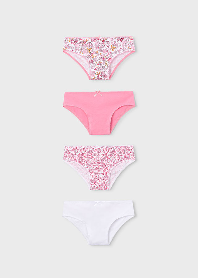 Mayoral négy darabos fehérnemű szett, mely tartalmaz egy rózsaszín, egy fehér és két mintás bugyit