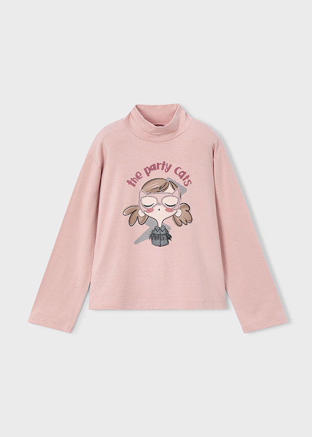 Mayoral hosszú ujjú garbós felső nagyon puha és kényelmes anyagból, az elején kislány mintával. Egy bőszárú farmerrel igazán trendi viselet.