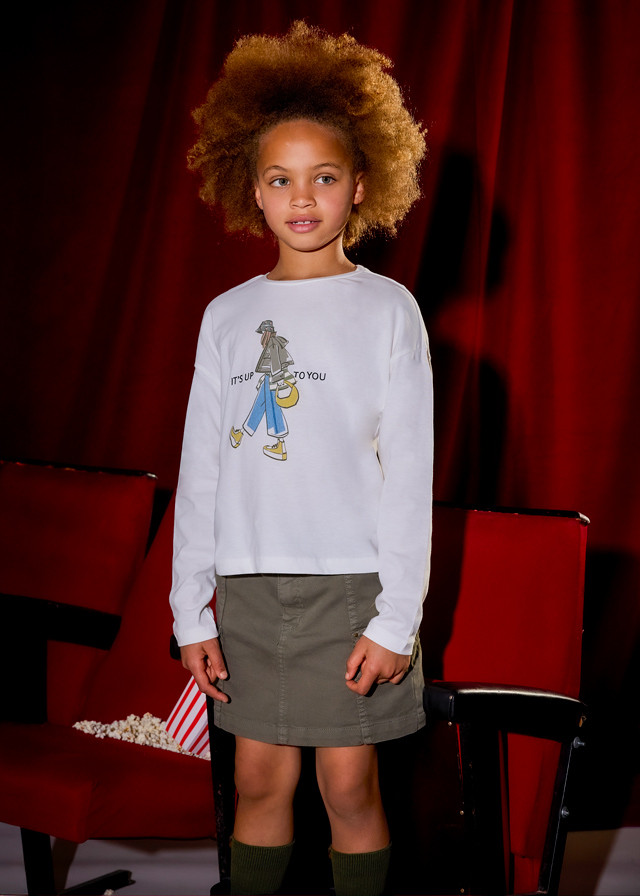 Mayoral kerek nyakkivágású hosszú ujjú felső lány mintával az elején, ősszel igazi alapdarab