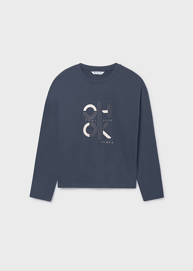 Mayoral kerek nyakkivágású hosszú ujjú felső nagyon puha tapintással, felirattal az elején, az ősz egyik kedvenc színében.